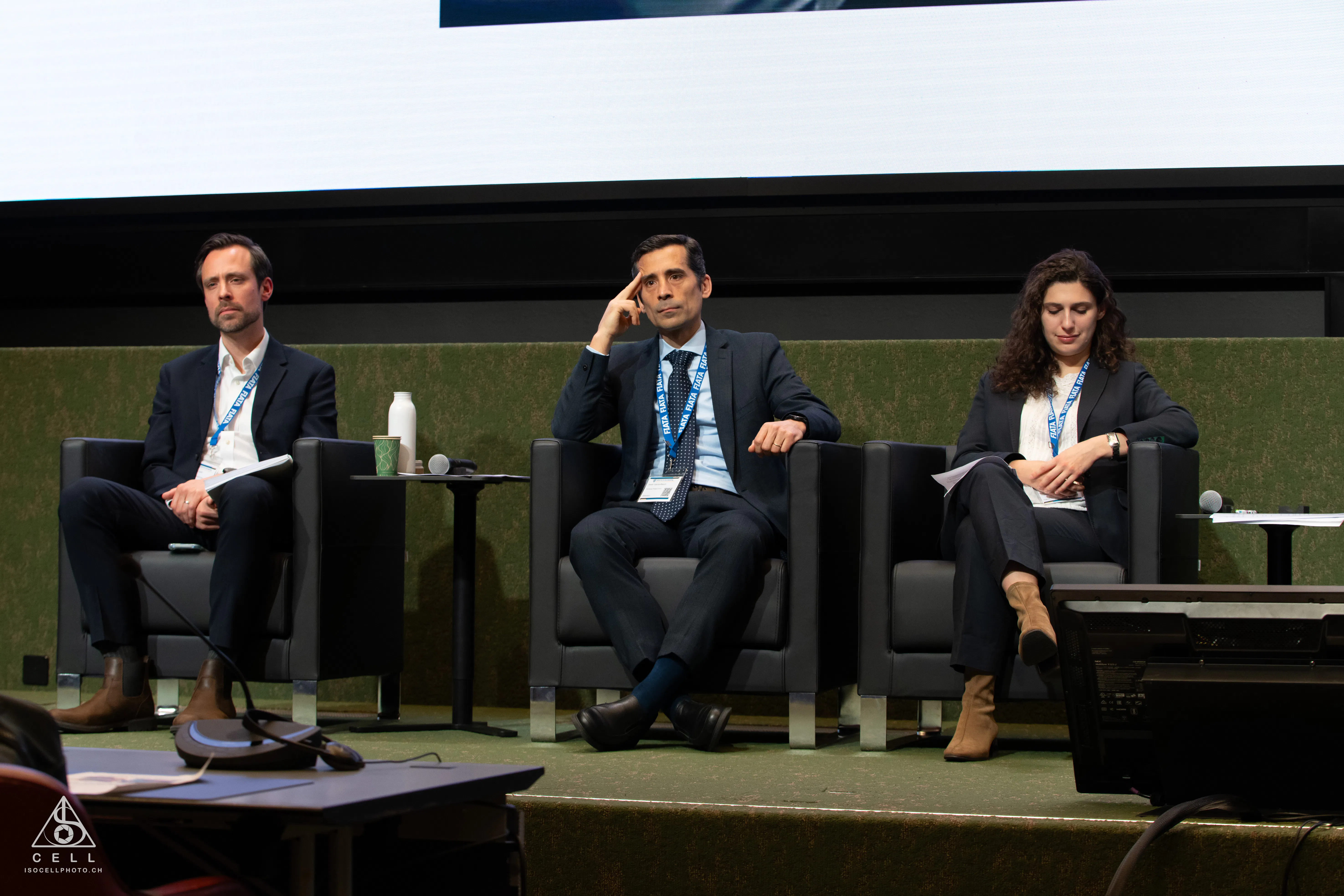 From left to right: Ms Anna Larsson, Director Global Communications & General Manager Europe, World Shipping Council; Mr Jan-Joost Den Brinker, Vice-President of the International Association for the Carbon Border Adjustment Mechanism (IACBAM) and Ms Oriane Minger, Carbon Finance Manager at SCB Environmental Markets SA.
