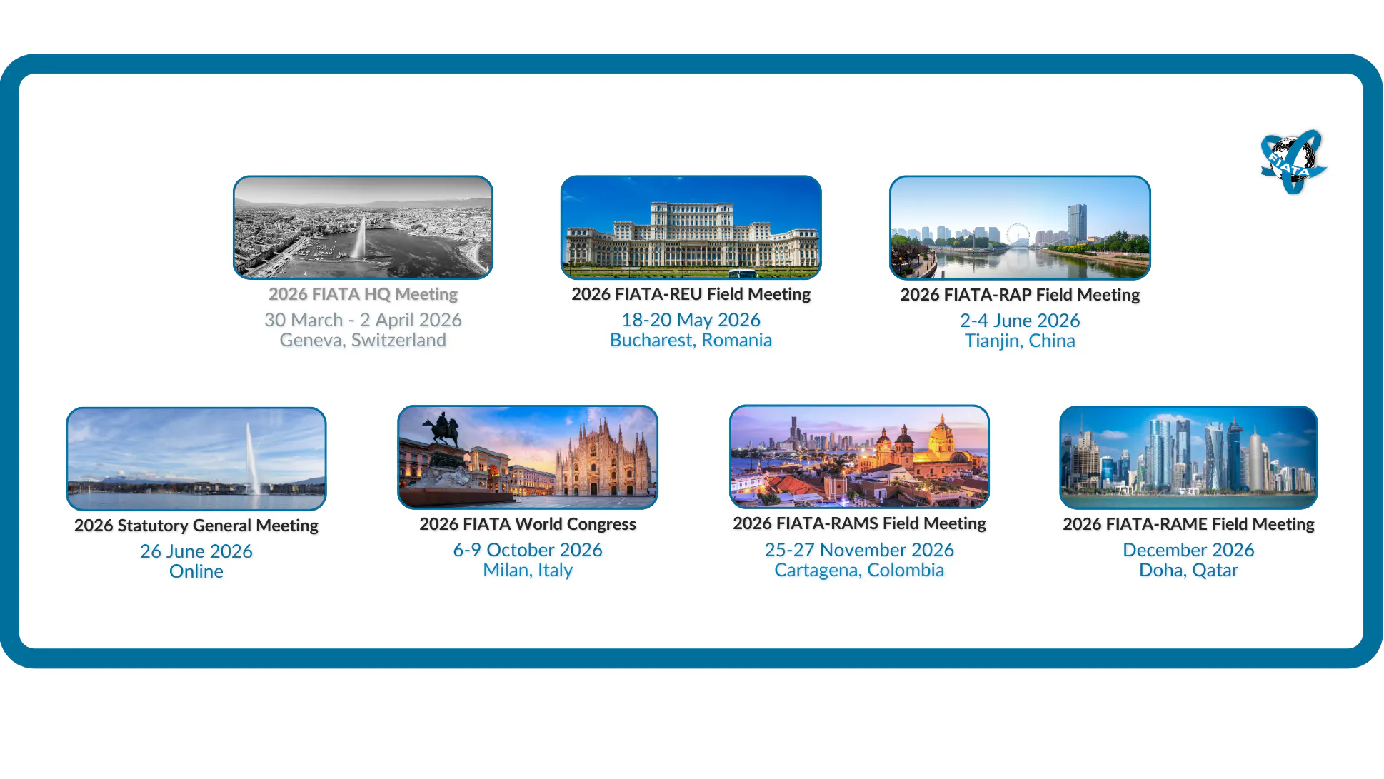 - 2026 FIATA-Region Africa and the Middle East Field Meeting, Doha, Qatar: tbc December 2026