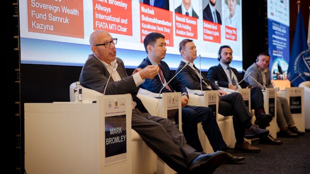 From left to right: FIATA MTI Chair, Mark Bromley; Kazakhstan Railways National Company, Director of Department of Multimodal Transportation, Nurbek Bekmukhambetov; YDA Holding (Aviation), Chair of the Managment Board & Member of the Board of Directors, Hamdi Guvenc; S Sistem Lojistik Hizmetler, CIS Country Director, Selami Avci; Asia Freight, Chief Executive Officer, Sergey Titz; Sovereign Wealth Fund Samruk Kazyna, the National Welfare Fund of Kazakhstan, Senior Expert, Timur Ospanov.